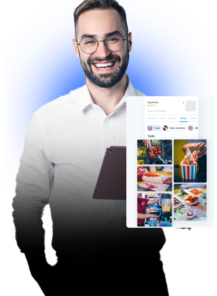 Configuração completa com informações essenciais (endereço, horário de funcionamento, etc). Adição de fotos profissionais do seu negócio.